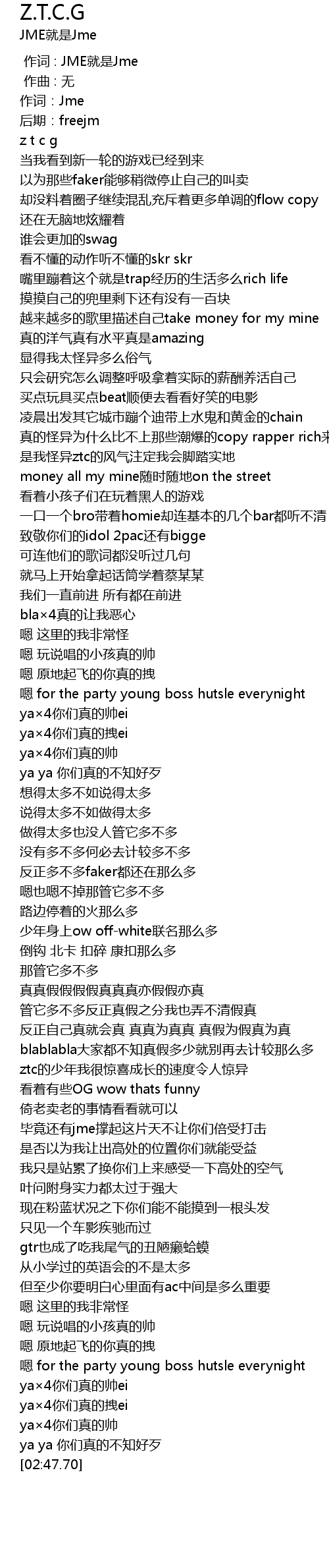 | [00:46.00] | 是我怪异ztc的风气注定我会脚踏实地 |