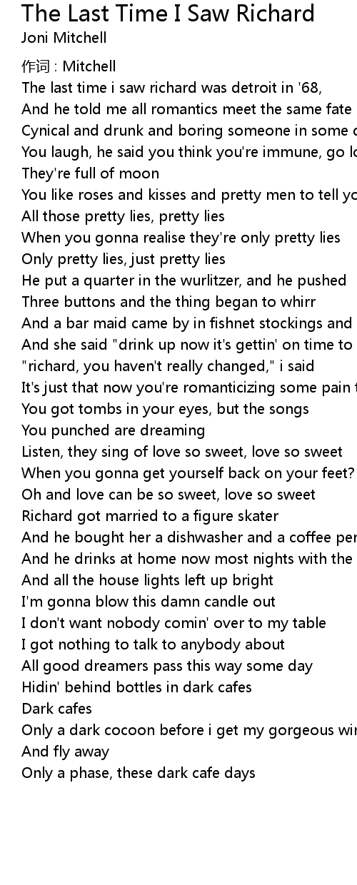 | And a bar maid came by in fishnet stockings and a bow tie | |