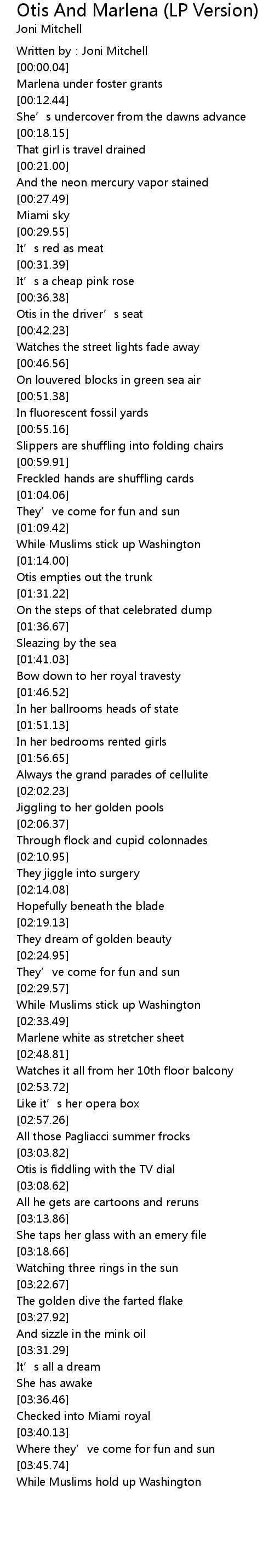 | [00:56.73] | Slippers are shuffling into folding chairs |