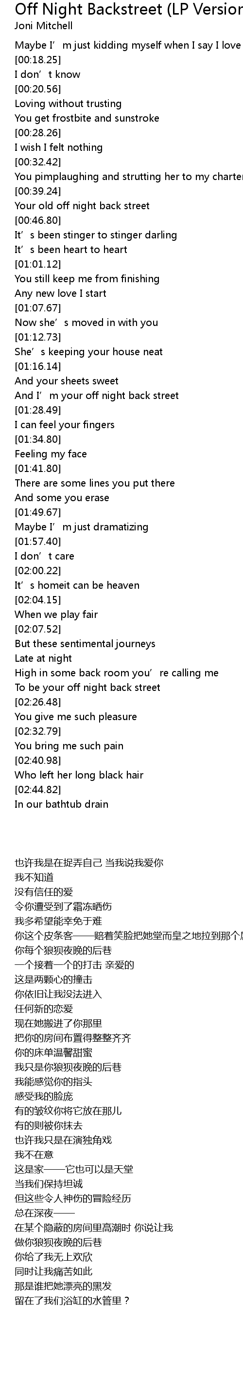 | [02:17.75] | To be your off night back street |