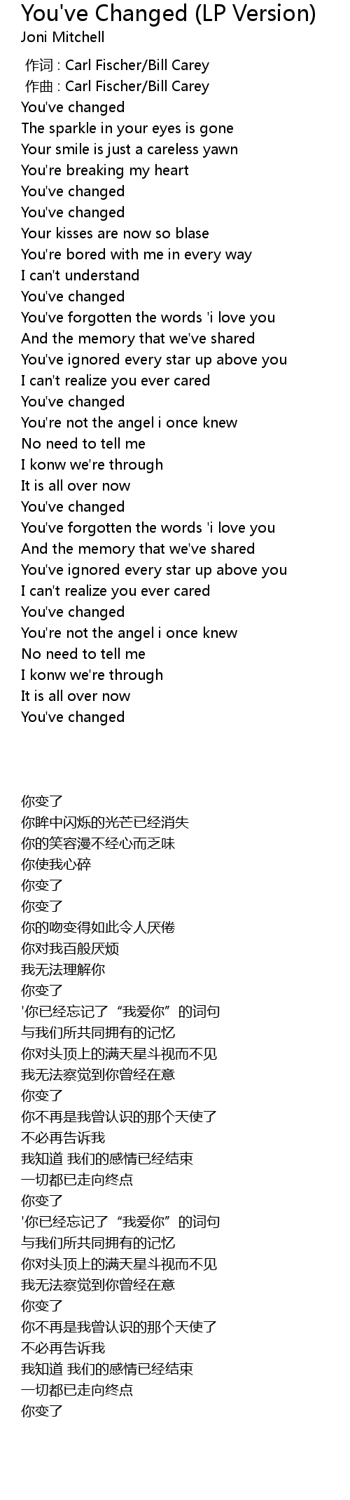 | Song | You've Changed (LP Version) |