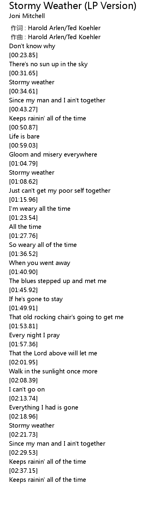 | [02:20.98] | Stormy weather |