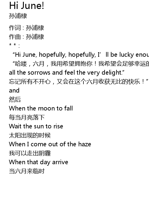 | wàng jì suǒ yǒu bù kāi xīn, yòu huì zài zhè gè liù yuè shōu huò wú bǐ de kuài lè!" | |