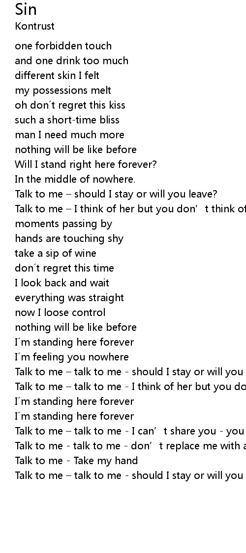 | Talk to me – talk to me - should I stay or will you leave? | |