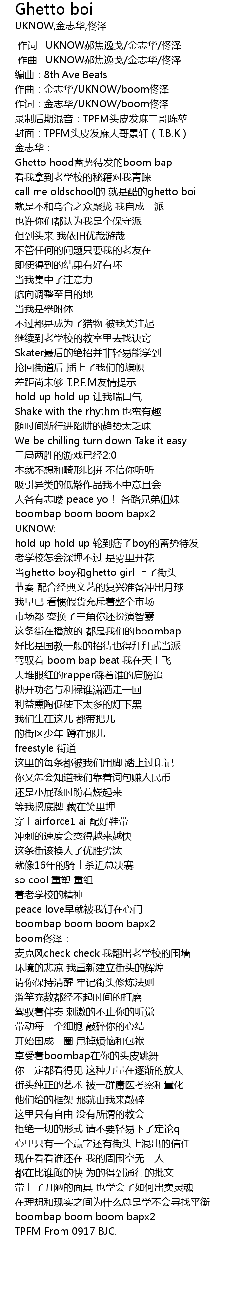 | [00:17.367] | Ghetto hood xu shi dai fa de boom bap |