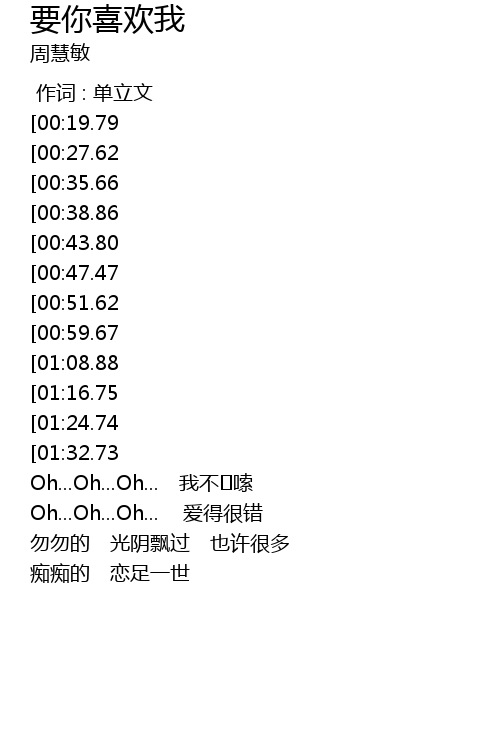 | [01:39.52] | Oh...Oh...Oh... 我不�嗦 |
