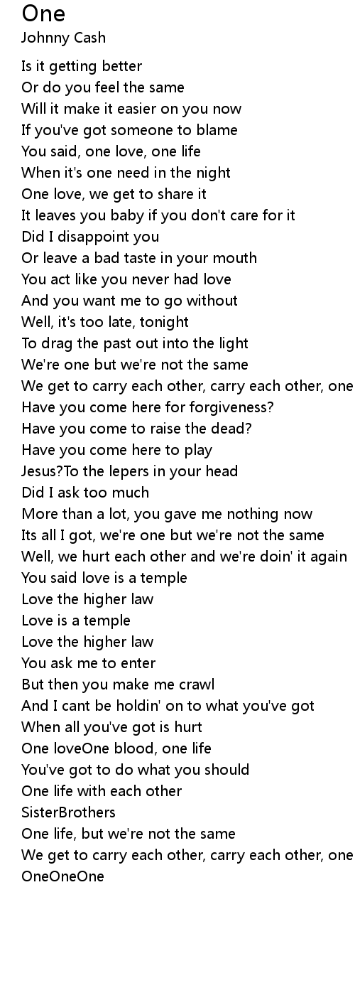 You said, one love, one life |