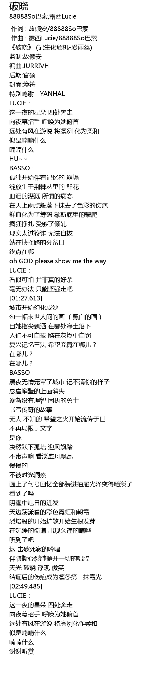 | [00:00.839] | 作曲 : 露西Lucie/88888So巴索 |