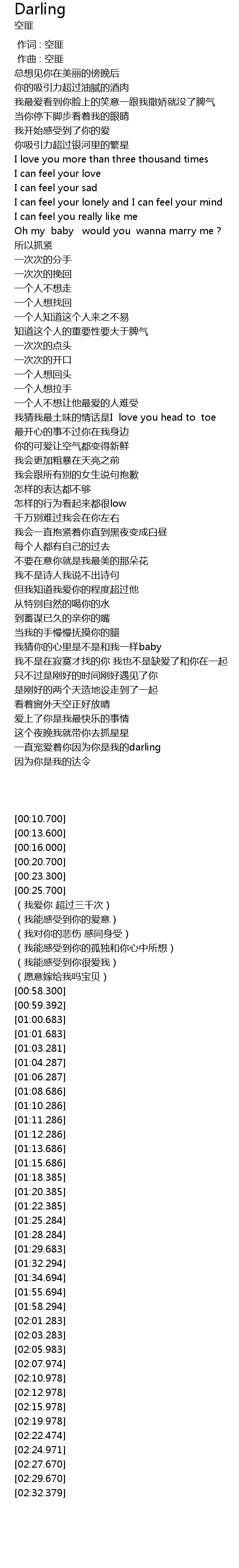 | [02:32.379] | yī zhí chǒng ài zhe nǐ yīn wèi nǐ shì wǒ de darling |