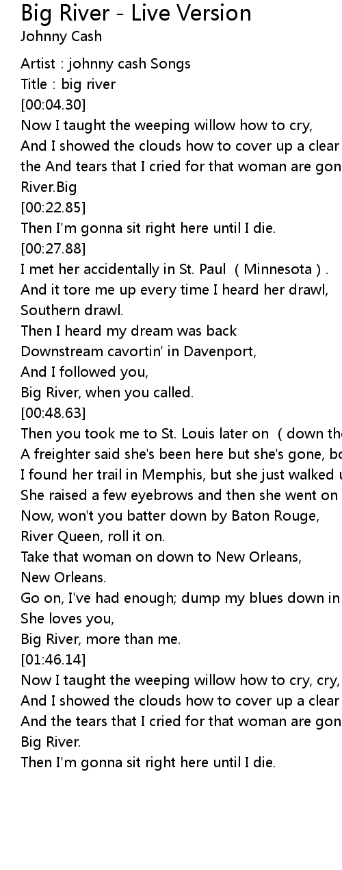 | [01:05.16] | Then you took me to St. Louis later on (down the river). |