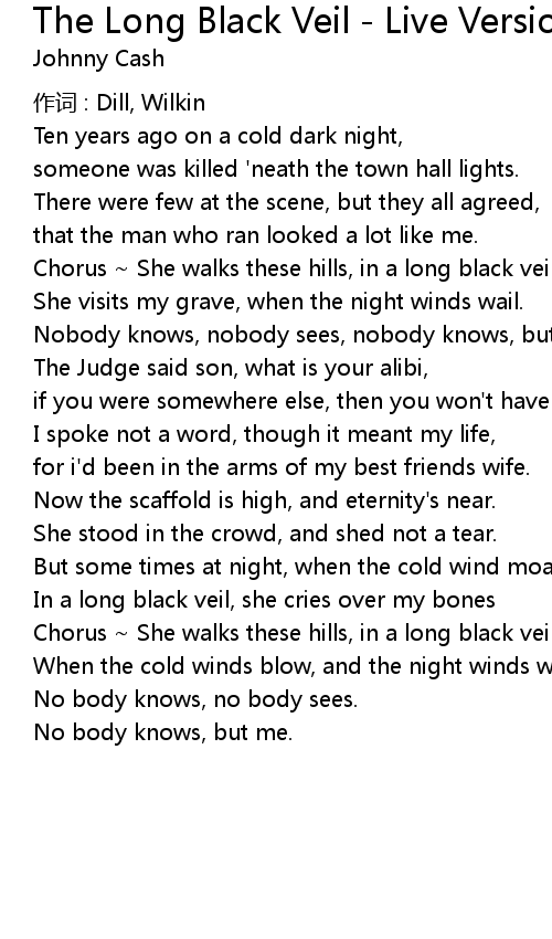 | Chorus She walks these hills, in a long black veil. | |