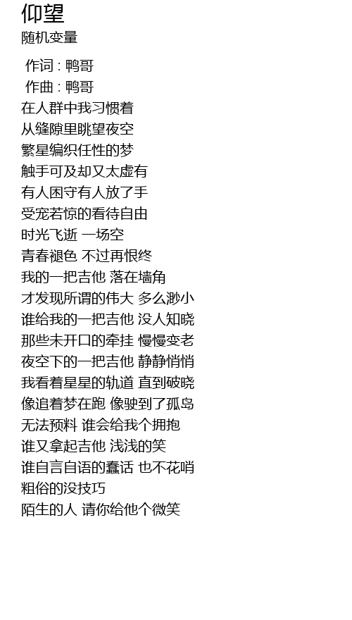| [01:12.992] | 谁给我的一把吉他 没人知晓 |