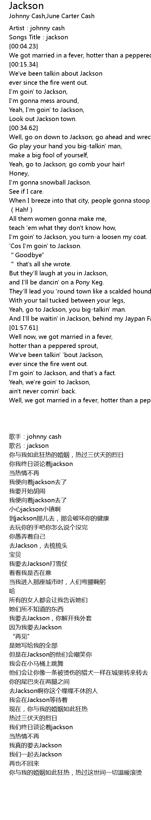 | [01:22.82] | 'Cos I'm goin' to Jackson. |