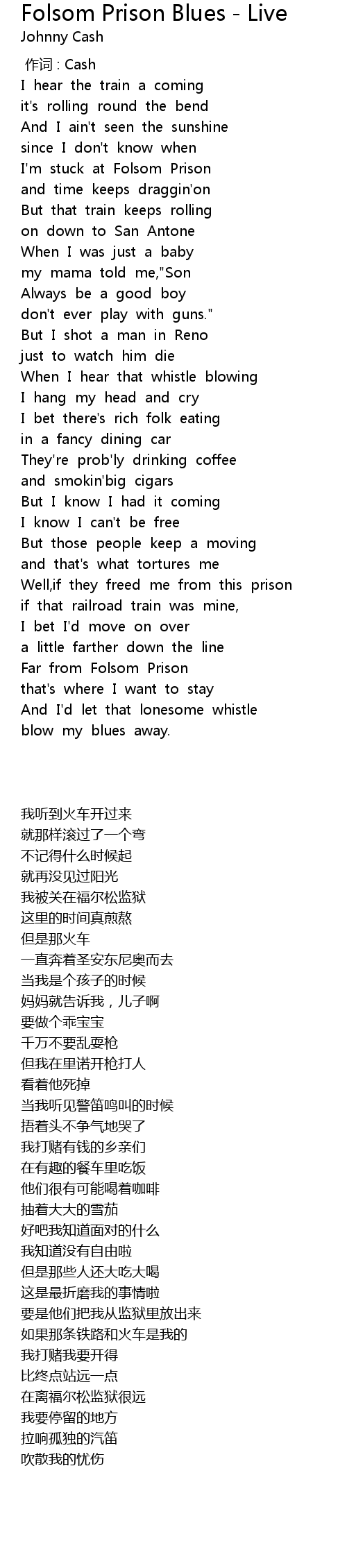 | [00:15.54] | I'm stuck at Folsom Prison |