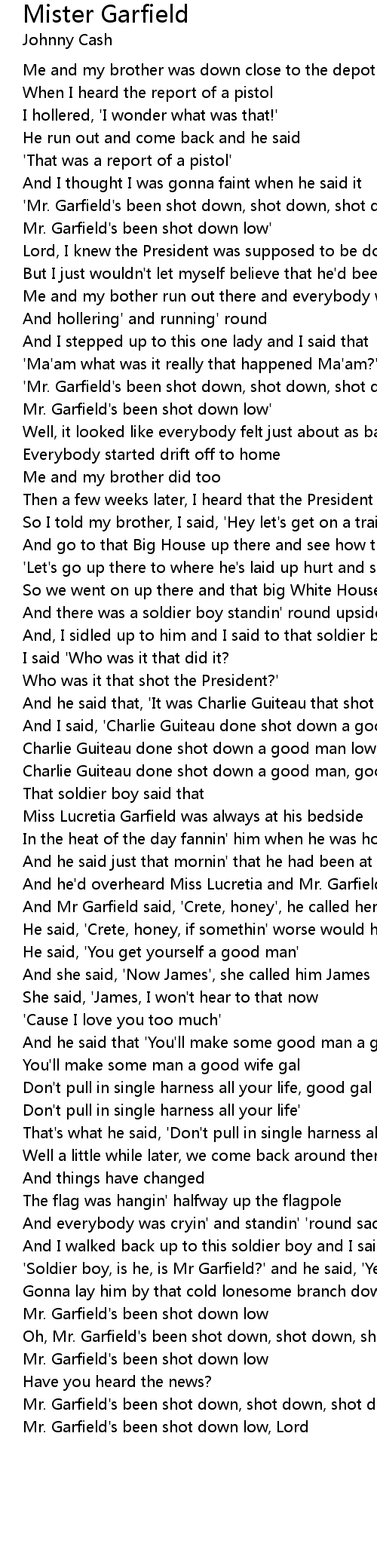 Oh, Mr. Garfield's been shot down, shot down, shot down