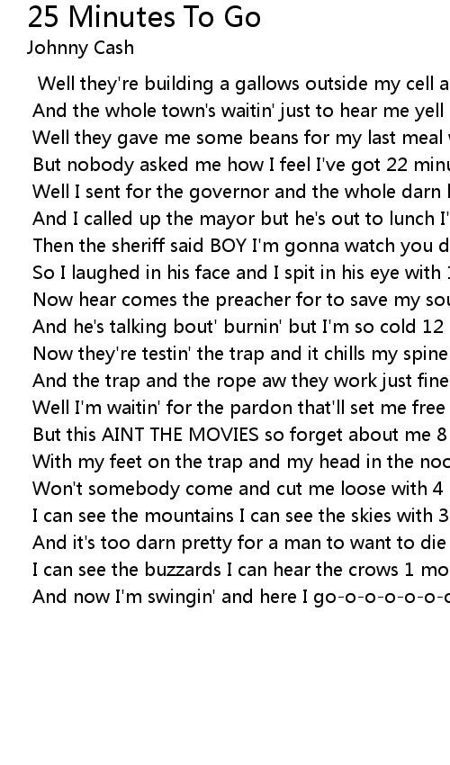 Well I'm waitin' for the pardon that'll set me free with 9 more minutes to go |