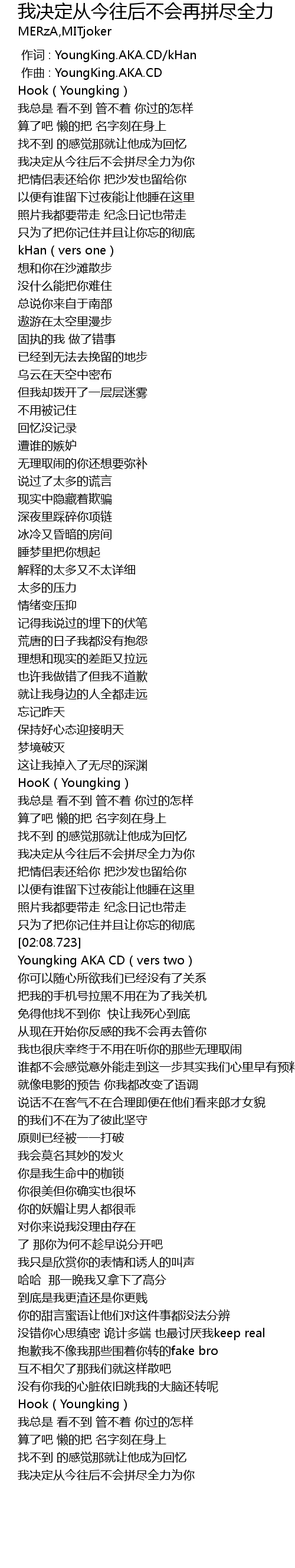 | [00:00.000] | 作词 : YoungKing.AKA.CD/kHan |