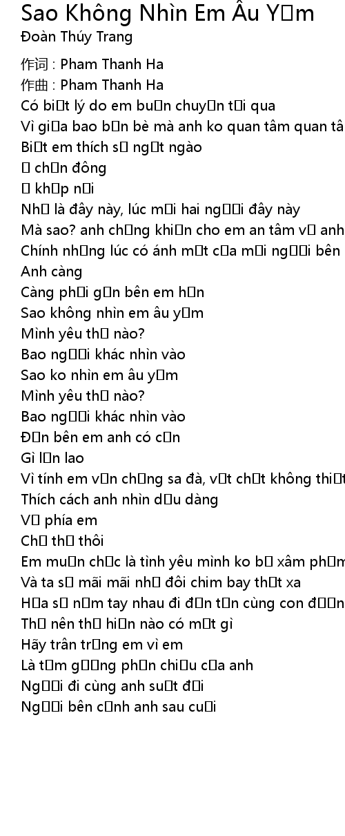 | Song | Sao Không Nhìn Em Âu Yếm |