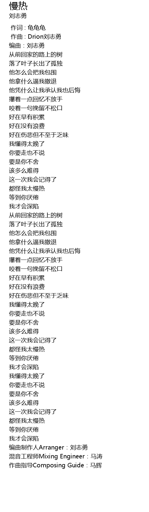 | [04:23.319] | 编曲制作人Arranger:刘志勇 |