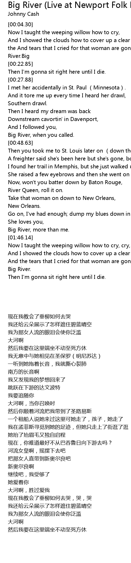 | Song | Big River (Live at Newport Folk Festival, Newport, RI, July 16, 1964) |