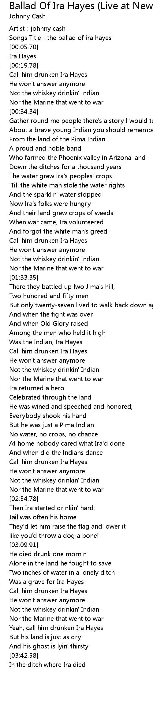 | [00:02.64] | Songs Title: the ballad of ira hayes |