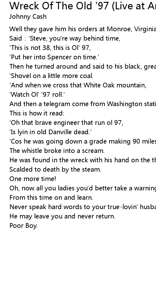 | Song | Wreck Of The Old '97 (Live at Annex 14 NCO Club, Long Binh, Vietman, January 1969) |