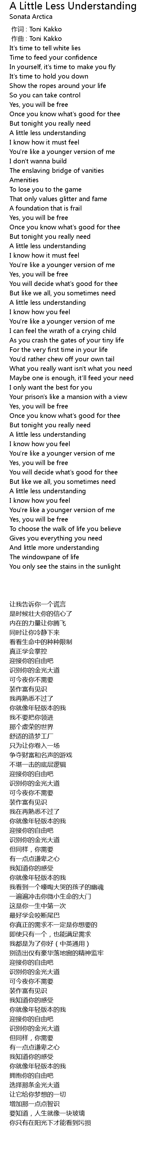 | [00:00.000] | 作词 : Toni Kakko |