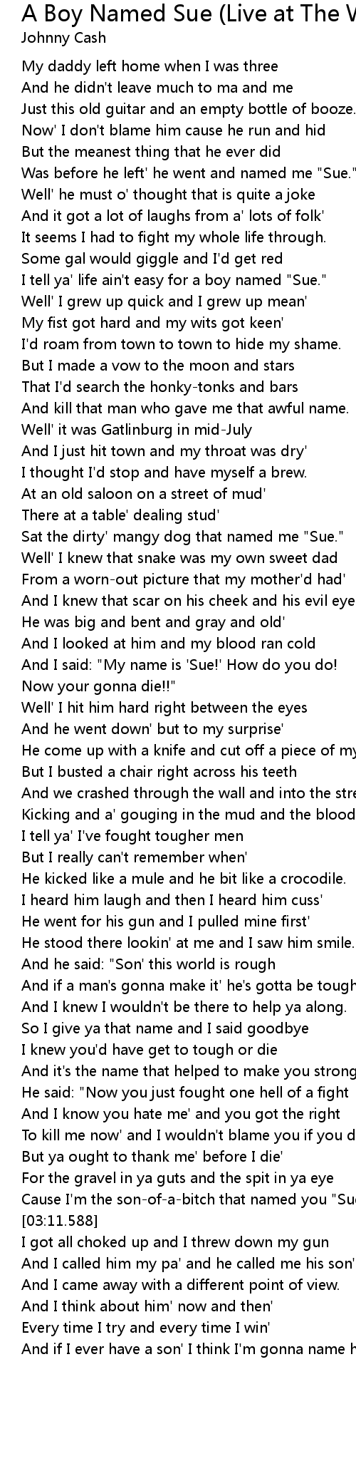 Cause I'm the son-of-a-bitch that named you "Sue.'" |