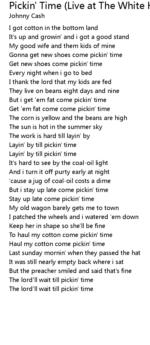 Pickin' Time (Live at The White House, Washington D.C., April 17, 1970) Lyrics