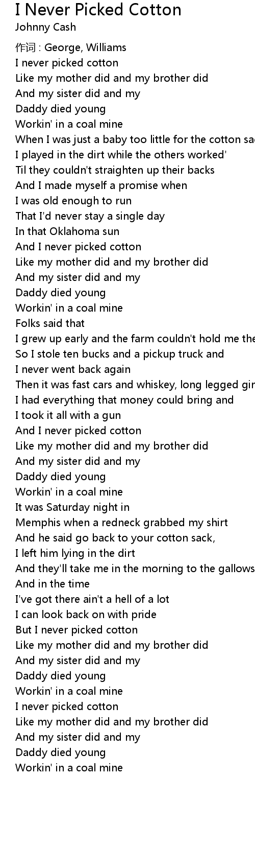 | But I never picked cotton | |