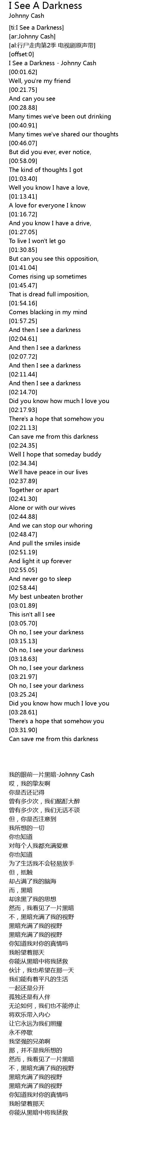 | [00:00.50] | I See a Darkness Johnny Cash |