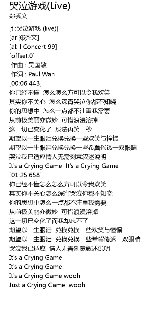 | [01:16.550] | It' s a Crying Game It' s a Crying Game |
