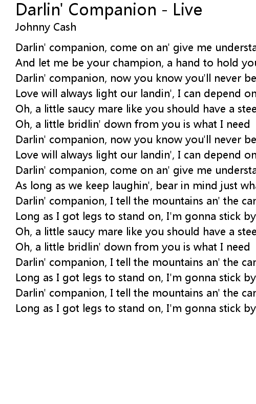 Darlin' companion, now you know you'll never be abandoned |