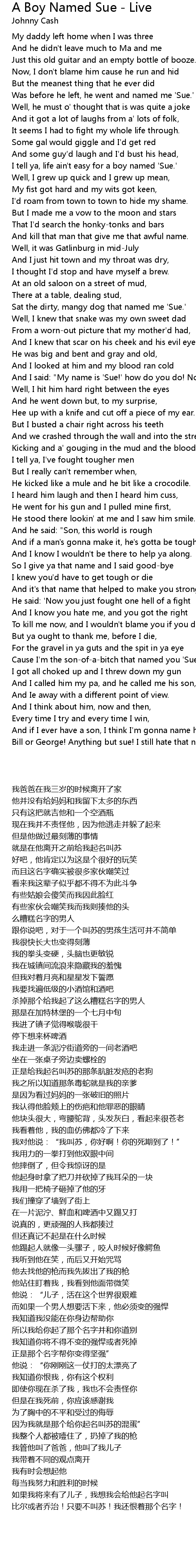Cause I'm the son-of-a-bitch that named you 'Sue'.' |
