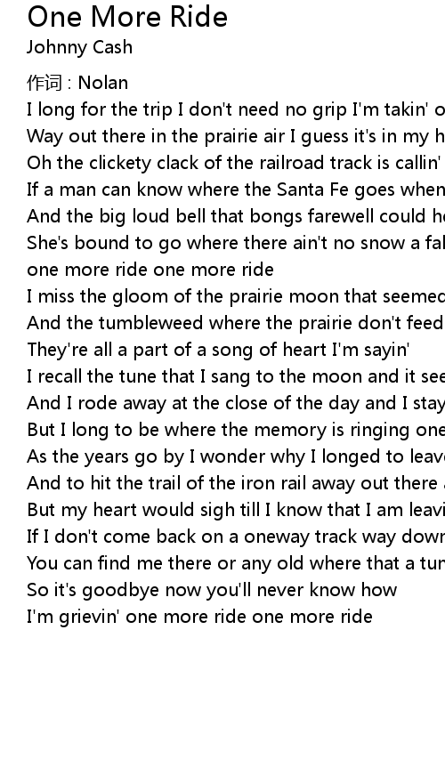 | But I long to be where the memory is ringing one more ride one more ride | |