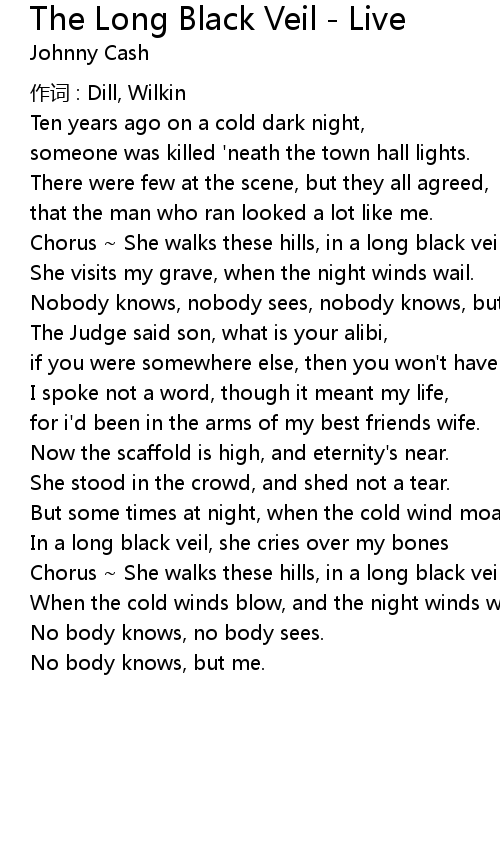 | Chorus ~ She walks these hills, in a long black veil. | |