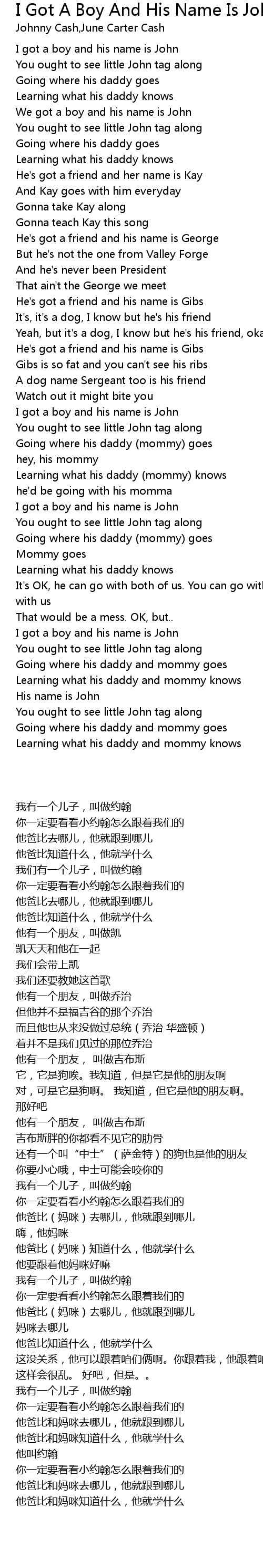I got a boy and his name is John |