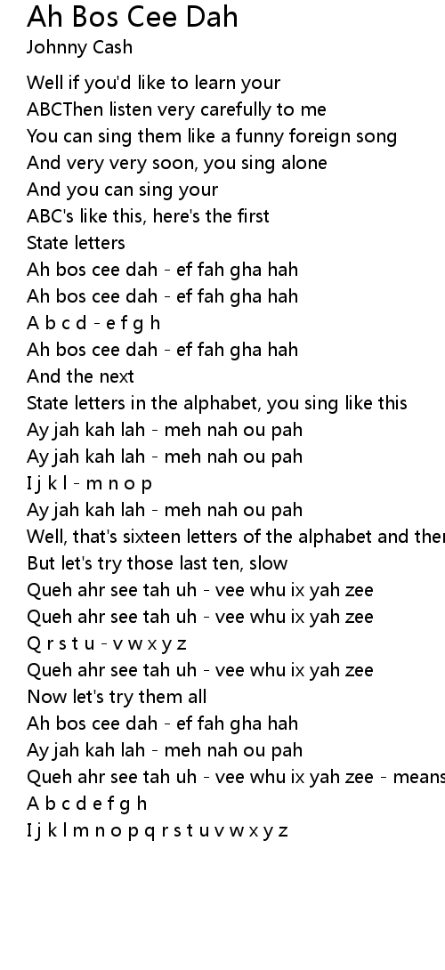 Ah Bos Cee Dah Lyrics