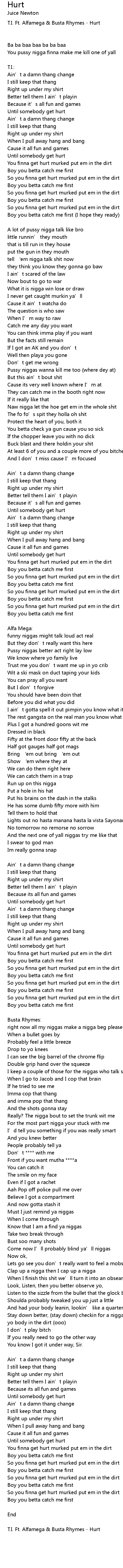 | T. I. Ft. Alfamega Busta Rhymes Hurt | |