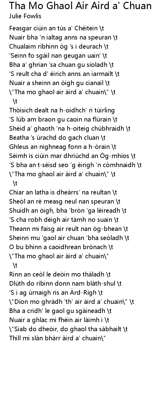 | \"Tha mo ghaol air àird a' chuain\" \t | |