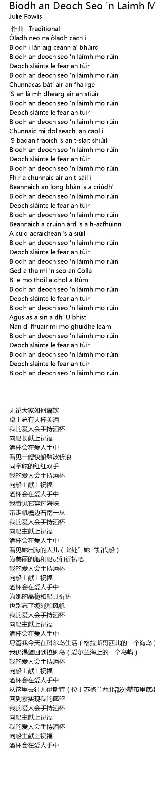 | [02:49.311] | Biodh an deoch seo ' n là imh mo rù in |