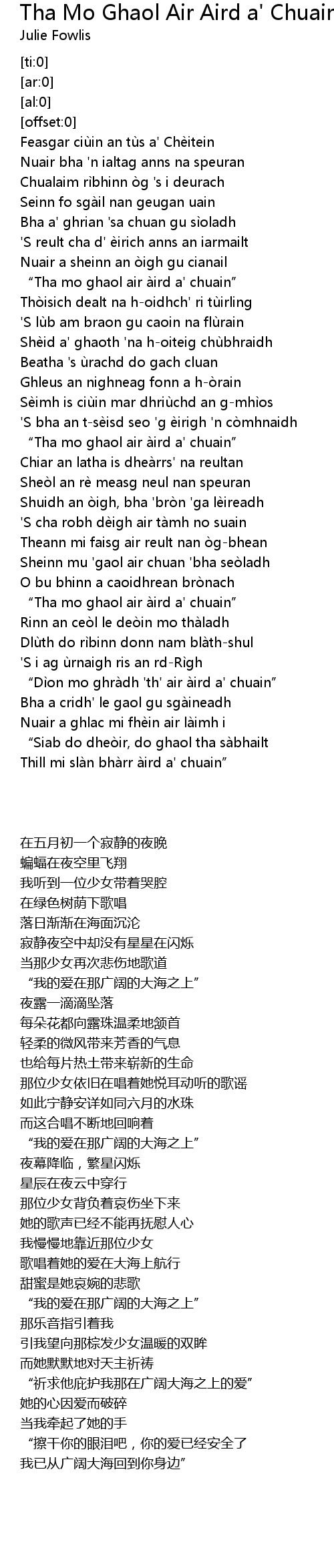 | [00:43.76] | " Tha mo ghaol air à ird a' chuain" |