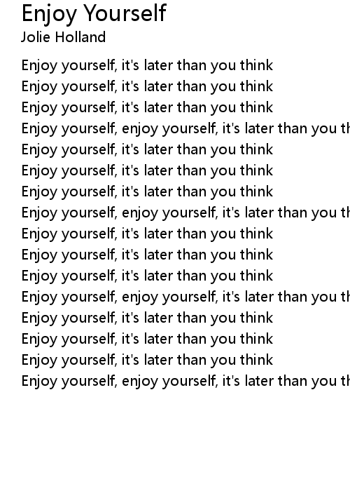 Enjoy yourself, enjoy yourself, it's later than you think |