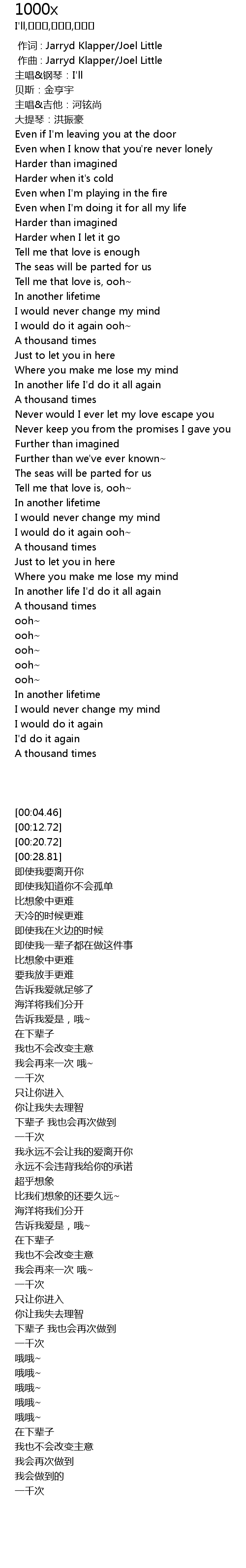 | [00:04.46] | 主唱&钢琴:I'll |