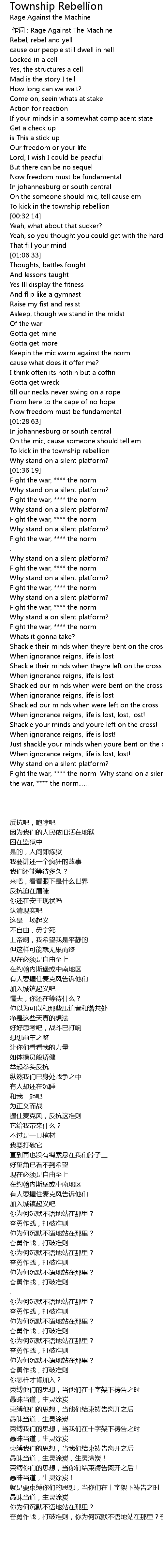 | [00:00.00] | 作词 : Rage Against The Machine |