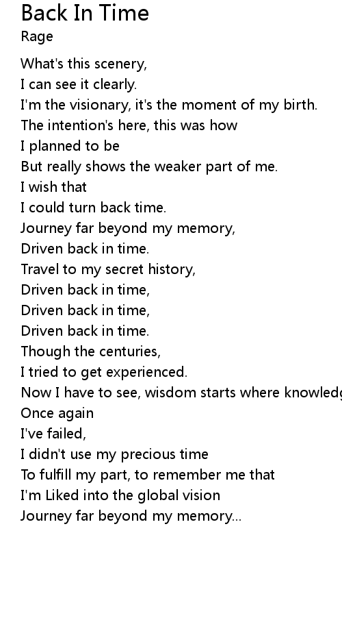 | Driven back in time, | |