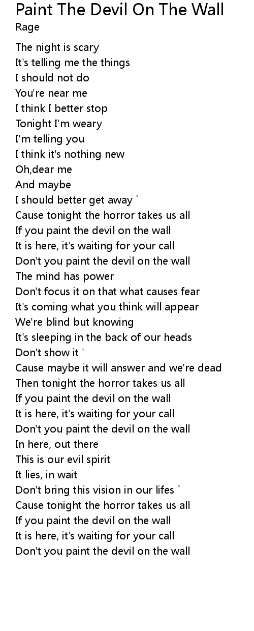 Don't you paint the devil on the wall |