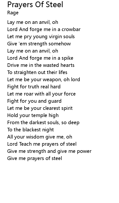 Give me prayers of steel |