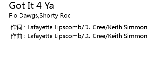 | [00:00.000] | 作曲 : Lafayette Lipscomb/DJ Cree/Keith Simmons/Gregory Cooper |