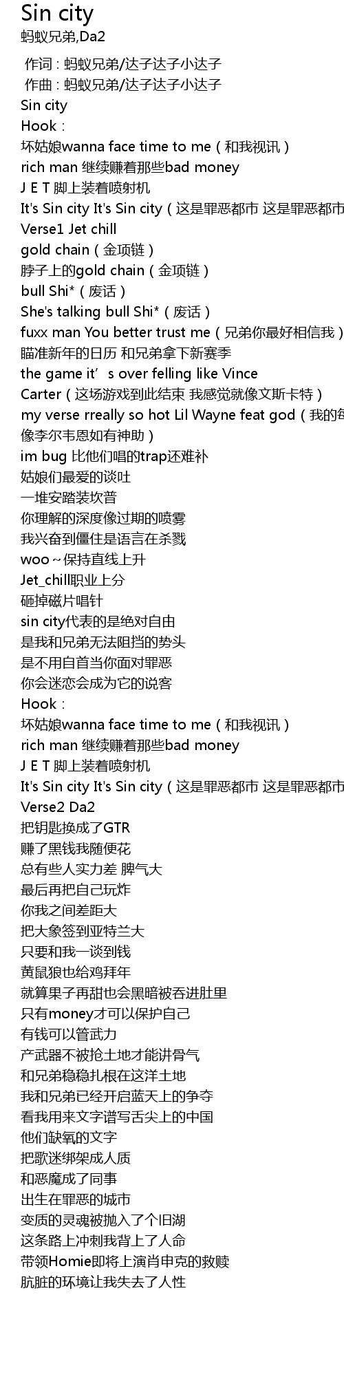 | [01:46.85] | It's Sin city It's Sin city(这是罪恶都市 这是罪恶都市) |